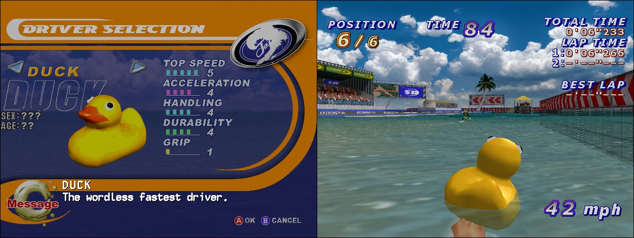 GameFAQs says that if you beat all three championship modes, you can race as a rubber duck. But can you skip all of that? I decided to check it out…
