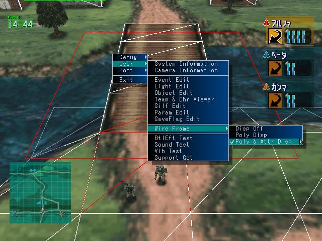 There’s a bunch of stuff in here — you can alter a variety of game parameters. Here is what the Wire Frame item does: