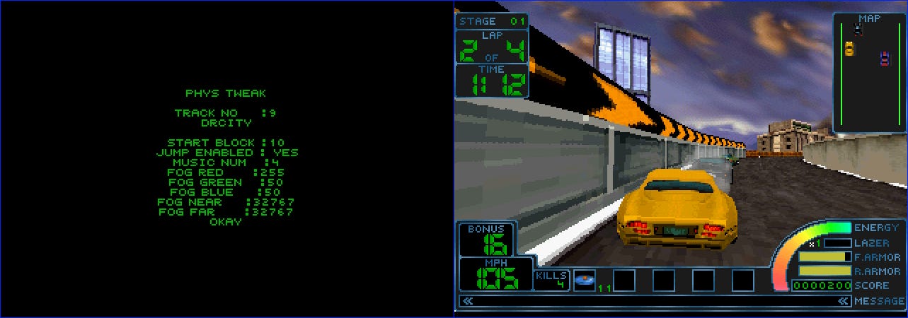 It came to my attention because of its debug mode. The PlayStation version is known to have a cool hidden menu that lets you adjust different aspects of the cars, tracks, gameplay and more.