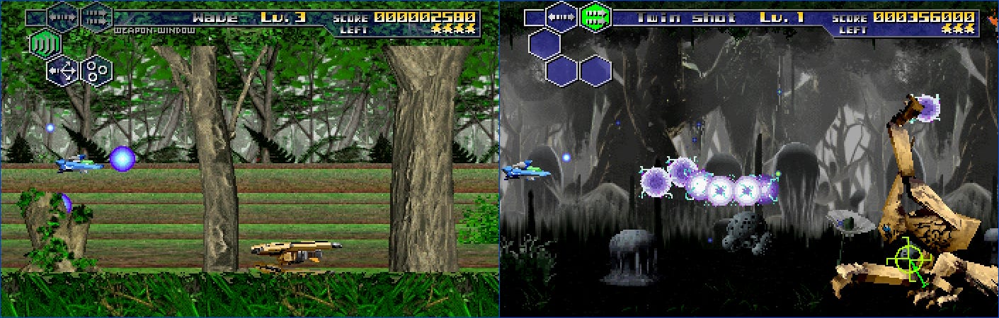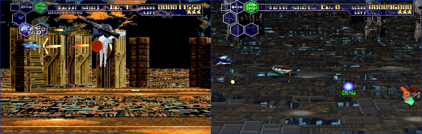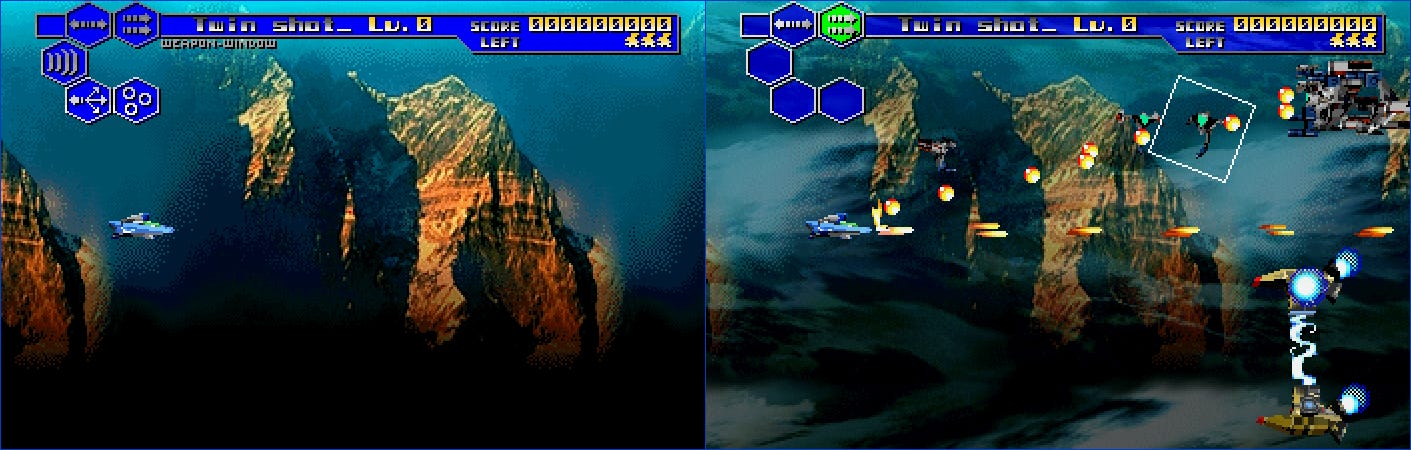 The scoring system is different, and the 10,000 points graphic is reused from the previous Thunder Force game.