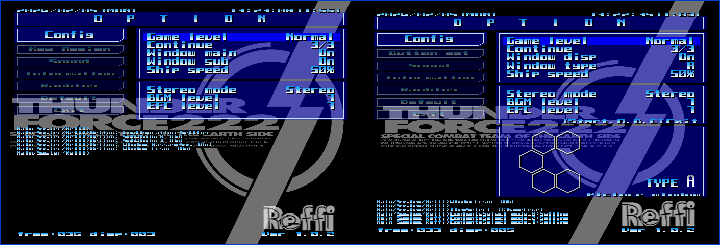 0601002a e000 # Don't set any restrictionsThat lets us access the Options screen. It’s somewhat different from the final version: The configuration screen has fewer settings. And it has different names for things —Window main instead of Window disp, Window sub instead of Window type.