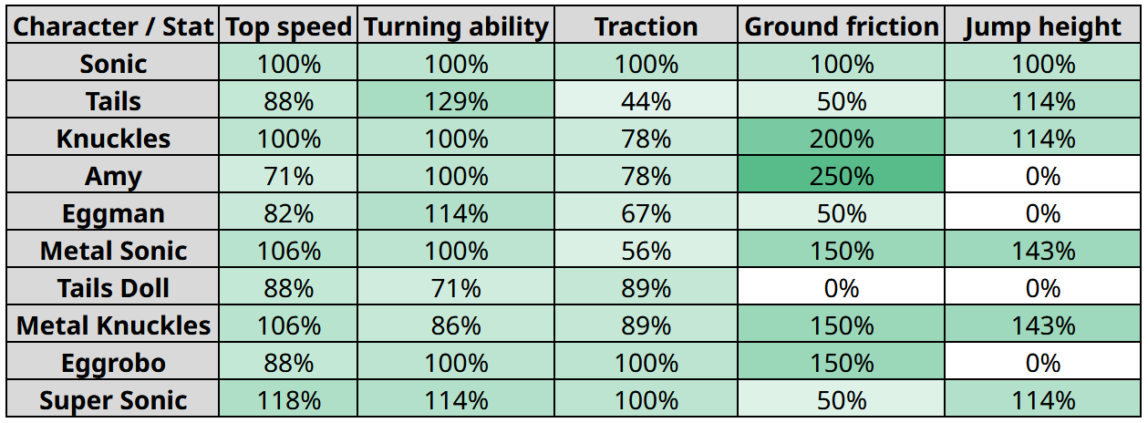 And here’s the difference between two ground friction values. Knuckles is shown with Tails’s value on the left, and his own on the right: