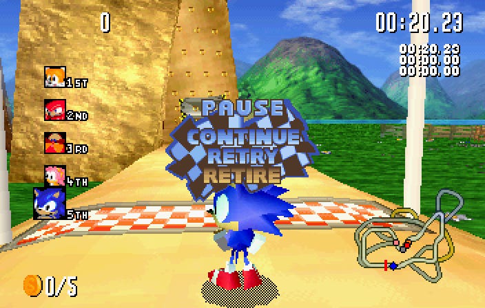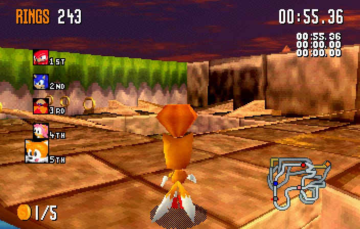 How necessary was all this? Not terribly – you can explore the courses in the Tag and Balloon modes in the normal version of Sonic R. But I liked the idea of being able to get the collectibles and unlock the extra characters without having to rush through the stages. And changing the controls does make moving around a lot more pleasant. If you try it out, leave a comment with your impressions!