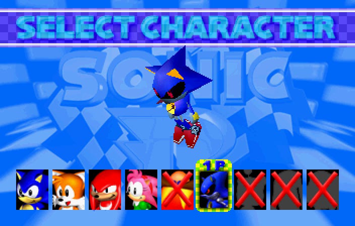 post_race_processing()The post-race processing then updates the 1-byte field at 0600b1c1. Each bit represents one of the unlockable characters: Eggman, Metal Sonic, Tails Doll, Metal Knuckles, Eggrobo, and Super Sonic.