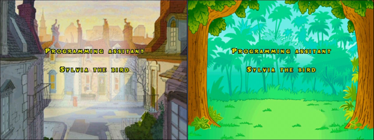 The staff roll text matches what’s in the Dalmatians game, including the shoutout to Sylvia the Bird:
