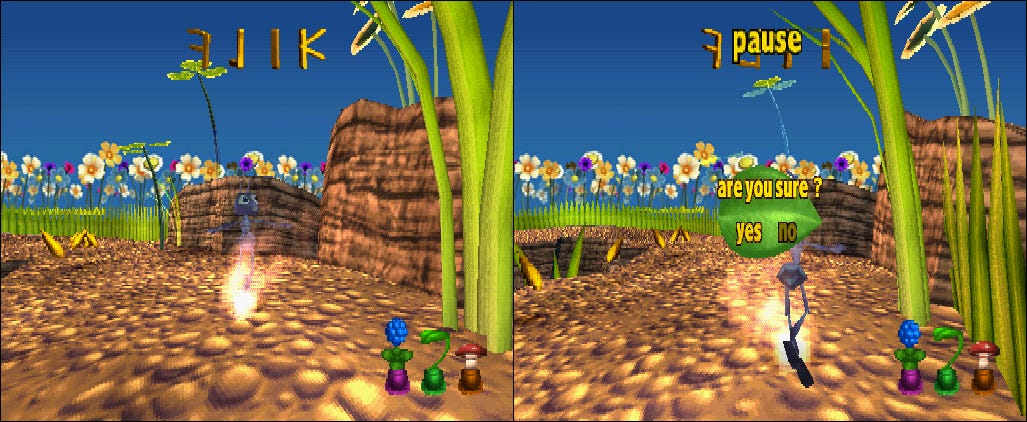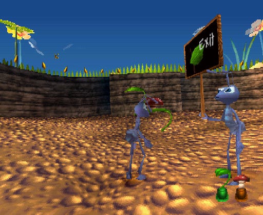 It’s time for another entry in my series on unreported cheat codes in licensed Disney games1. This week, we’re covering A Bug’s Life, which was developed by Traveller’s Tales. The PlayStation version of this game has a very unusual “unlock all levels” cheat that I don’t think has been reported before.