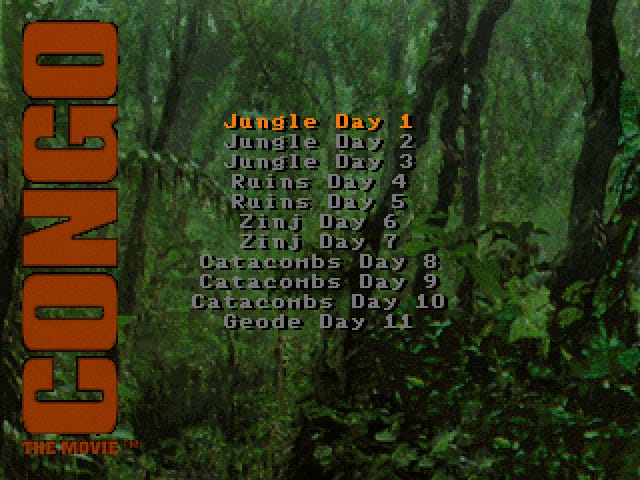 Congo the Movie: The Lost City of Zinj is a Doom-like FPS that’s set in the world of the 1995 film Congo. It doesn’t use the movie characters or scenes, however — it’s an original story with its own video clips.