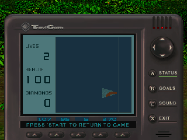 The next three cheat codes are entered during gameplay. Press and hold Start to begin - you’ll see the Status screen appear: