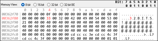 This turned out to be a dead end – there aren’t any special player names. But exploring this dead end was fruitful. On PS2, the letters you put in appear (encoded as UTF-16) at memory address 00362f80: