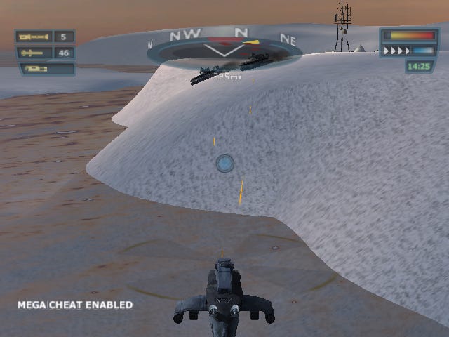 FireBlade is a helicopter game from Kuju Entertainment. It was released for PlayStation 2, Xbox, and GameCube in 2002. Although cheat sites and magazines don’t seem to have ever listed any codes for it, there are some suggestive strings in the game data. Here’s one from the Xbox version’s GLOBENGL.str file: