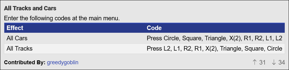 Many thanks to Blaze from the Sonic Weekly Discord for prompting me to look at Ford Racing 3. Which other games have missing or bogus cheat codes? Leave comments with your suggestions.