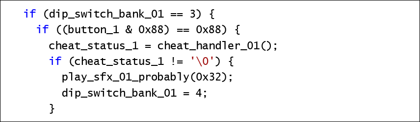 060336bc "[C02[C0/[C13[C0/[C14[C0/[C15[C0/[C1FREEPLAY"Tracing references to those strings leads to the function at 0602dc14, which is the main handler for the DIP Switch settings screen. It has some logic that caught my eye: