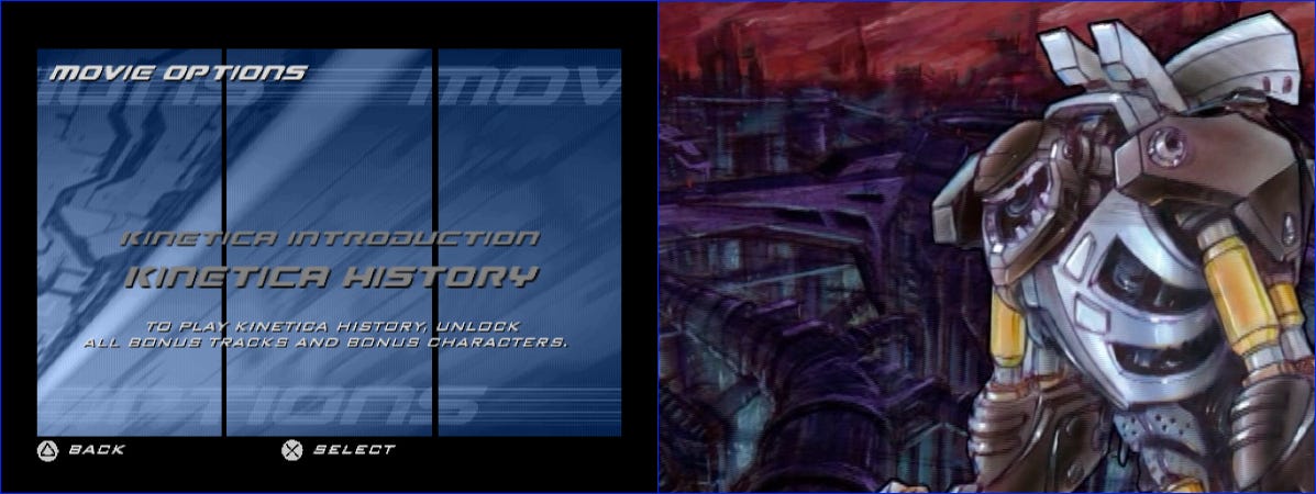 Let’s take a look at Kinetica, shall we? This was released in 2001 for the PlayStation 2. It was developed by SCE Santa Monica, who would go on to make the God of War games. It’s a racing game that features cyborg characters speeding through futuristic tracks while wearing disturbingly little clothing.