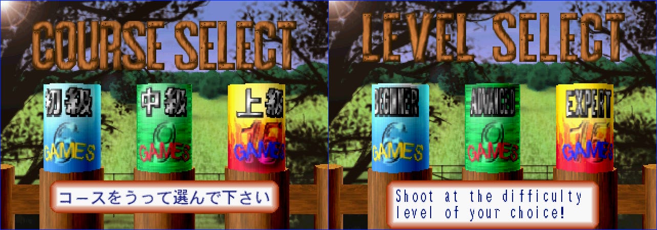The Japanese Saturn version lets you access an extra difficulty level from the Course Select screen. You have to shoot the U, R, and L letters to make it show up.