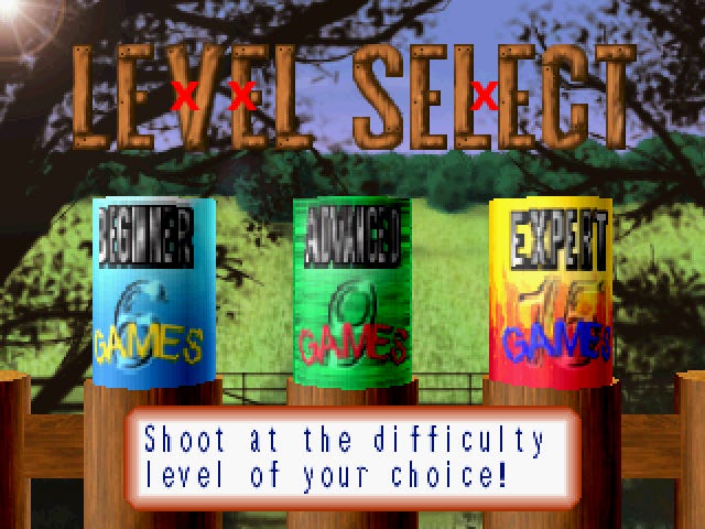 The PAL version has different letters, however. Since it says Level Select instead of Course Select, there’s no U or L to shoot: