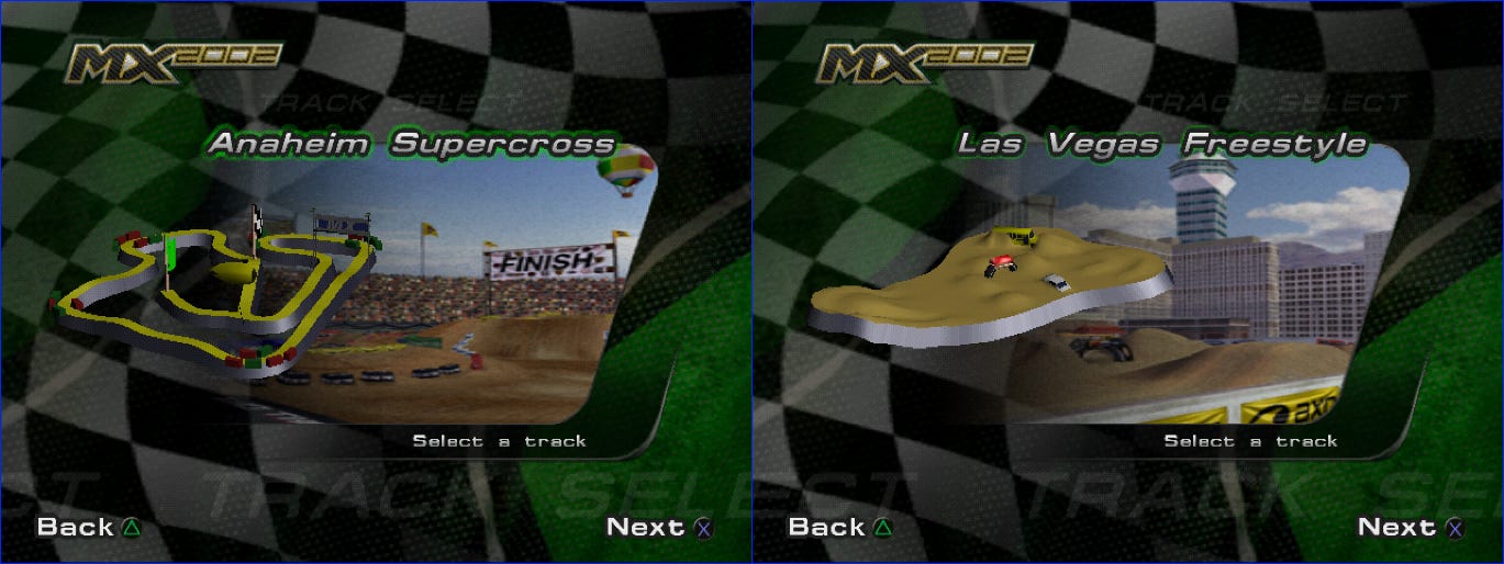 L1+Triangle, Left, LeftAll of the tracks will be available in both the Supercross and Freestyle modes:
