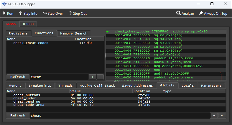 How did I know to type in OPEN IT ALL? Well, this game comes with debug symbols. You can see them in the PCSX2 Debugger: