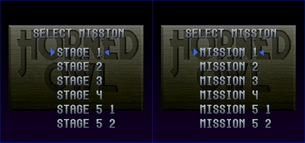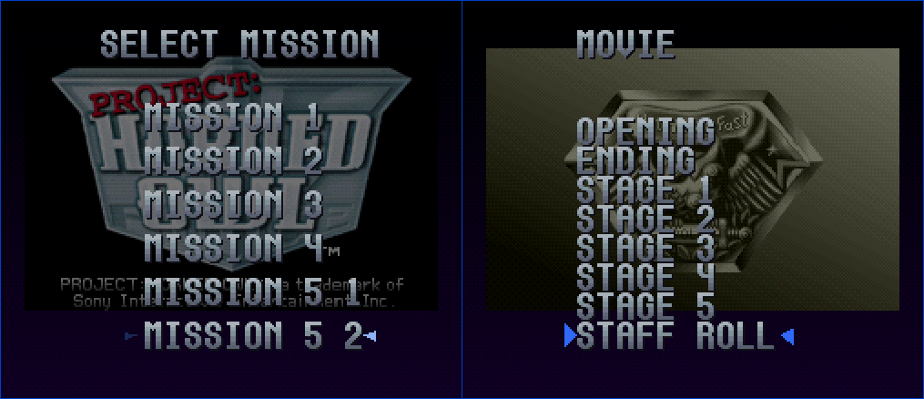 Some strategic memory modifications (see below) can grant access to the menu screens. Most of them look like their final counterparts, but the Select Mission screen is different: