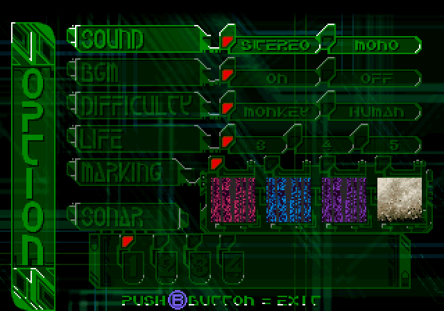 GameFAQs lists a cheat for the PlayStation version of this game (it activates a sound test mode), but it doesn’t work on the Saturn version. I hoped to find an equivalent code for Saturn, but found three others instead.
