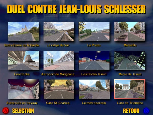 Press Start+A when you’re finished. The Mode Arcade menu item will now be available if you got it right. You’ll be able to select from any of the Mode Mission tracks and from any of the Mode Arcade tracks: