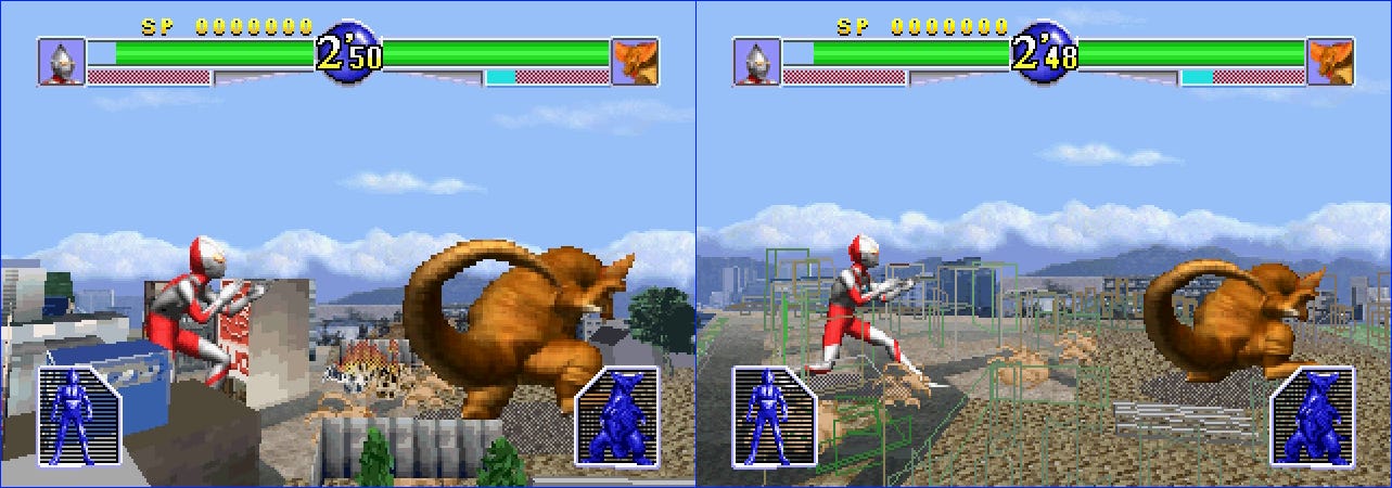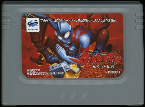 Ultraman: Legendary Giant of Light is a fighting game for Saturn. It’s one of five Ultraman titles for Saturn (two games and three media discs), and one of two Saturn titles to require both a CD and a ROM cart (the other is The King of Fighters '95)
